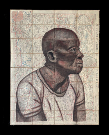 Dessins réalisés au pastel sec sur des cartes routières anciennes.